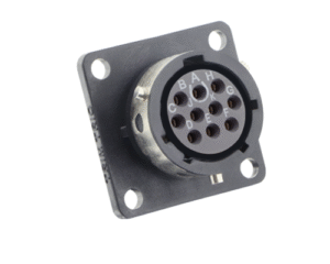 10 Way Female Square Flanged Panel Connector with Dip-Solder Contacts, IP68 & IP69K