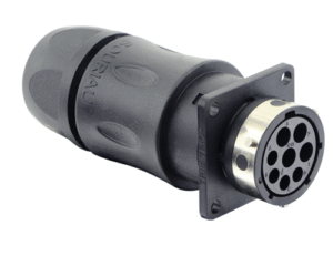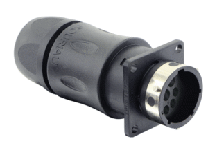 7 Way Square Flanged Panel Connector for Socket Contacts, with Backshell, 5-14mm Straight Cable Entry, IP68 & IP69K
