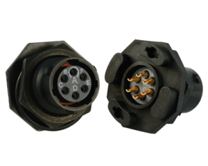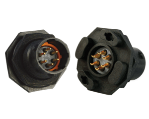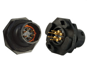 6 Way Male Jam-Nut Panel Connector with Dip-Solder Contacts, Stand Off & Hold Down Clips, IP68 & IP69K