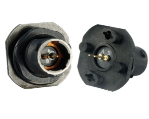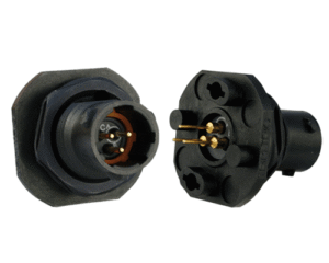 2 Way Male Jam-Nut Panel Connector with Dip-Solder Contacts, Stand Off & Hold Down Clips, IP68 & IP69K