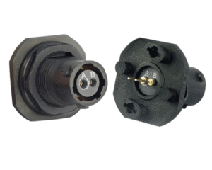 2 Way Female Jam-Nut Panel Connector with Dip-Solder Contacts, Stand Off & Hold Down Clips, IP68 & IP69K