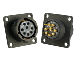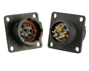 7 Way Square Flanged Panel Connector for Pin Contacts, IP68 & IP69K