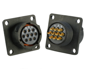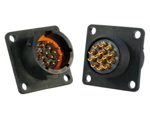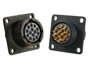 12 Way Square Flanged Panel Connector for Pin Contacts, IP68 & IP69K