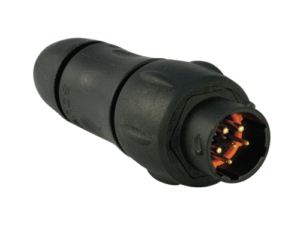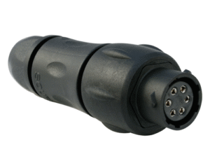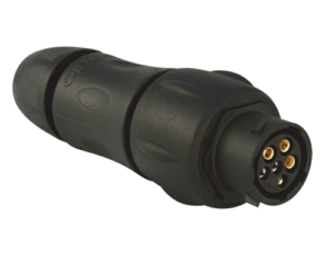 7 Way In-Line Cable Connector for Pin Contacts, 1.5-8mm Straight Cable Entry with Internal Wire Sealing Grommet, IP68 & IP69K