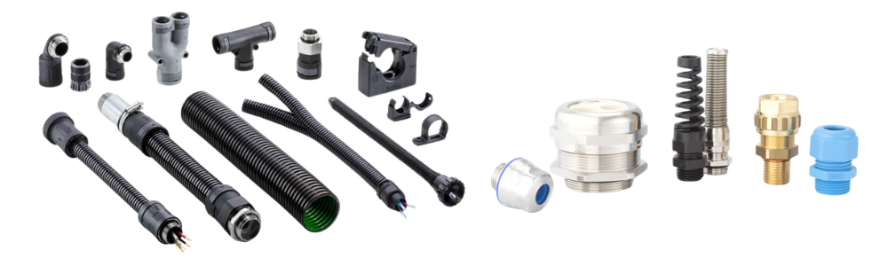 - VariaPro/VariaPro Rail – industrial cable glands with IP68 to 10 bar protection, integrated EMC, and standardised resistance to high or low temperatures and chemical corrosion.